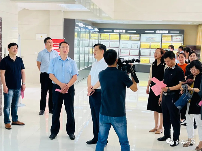 6月22日上午,中國樂器協會常務副理事長孫瑞勇在靖江市城南園區黨委書記楊曉波的陪同下,一行蒞臨奇美公司調研指導,奇美公司董事長張龍貴熱情接待。
